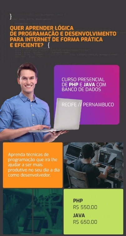 Curso partindo do zero para todos os públicos, PHP e JAVA BÁSICO.